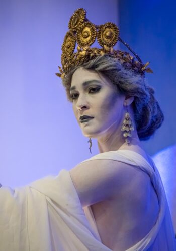 La serata al MuMe è stata aperta da dieci performer diretti da Marco Savatteri nella sua creazione “Al passo coi templi- Experience”, viaggio nel mondo del mito greco classico, tra danza divinatoria e rituale. Musiche originali, nella forma di canti a cappella, davano forza alle movenze degli interpreti, simili a statue viventi, plasmati con tuniche di ispirazione greca.